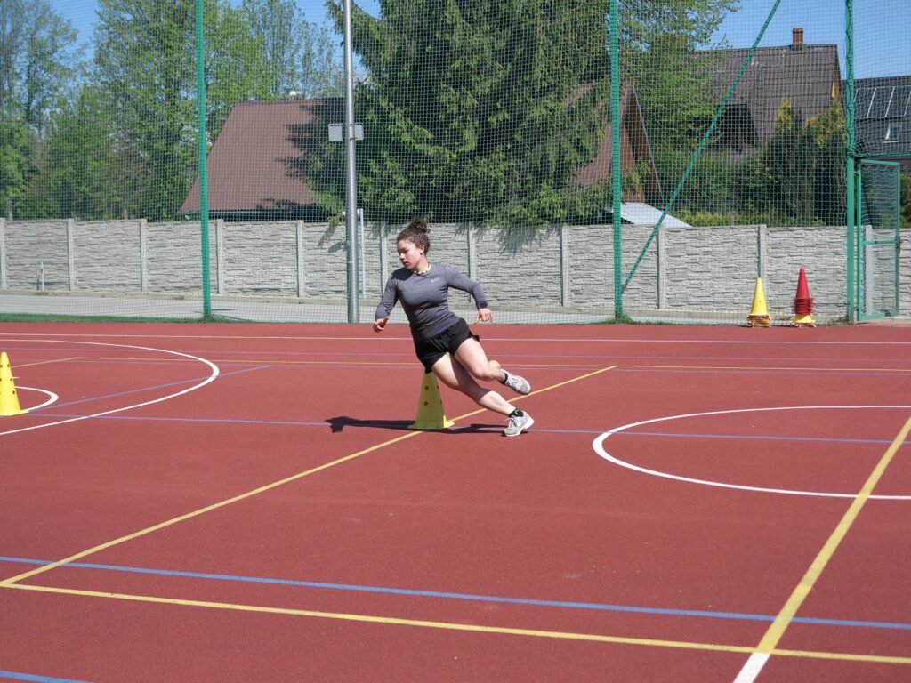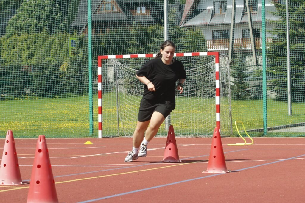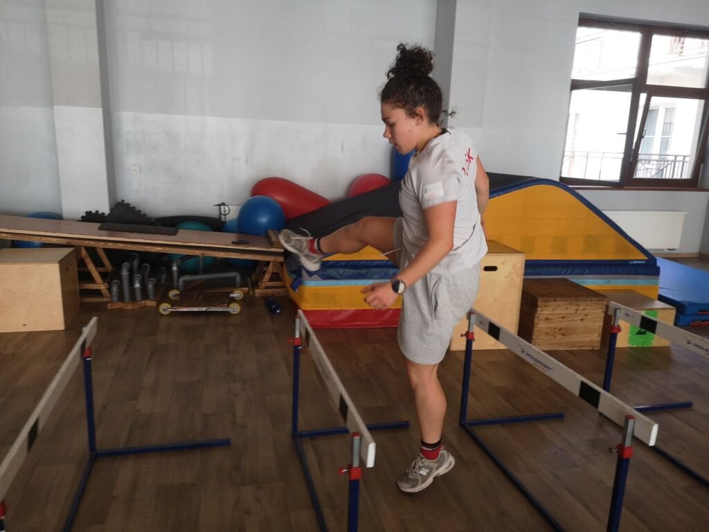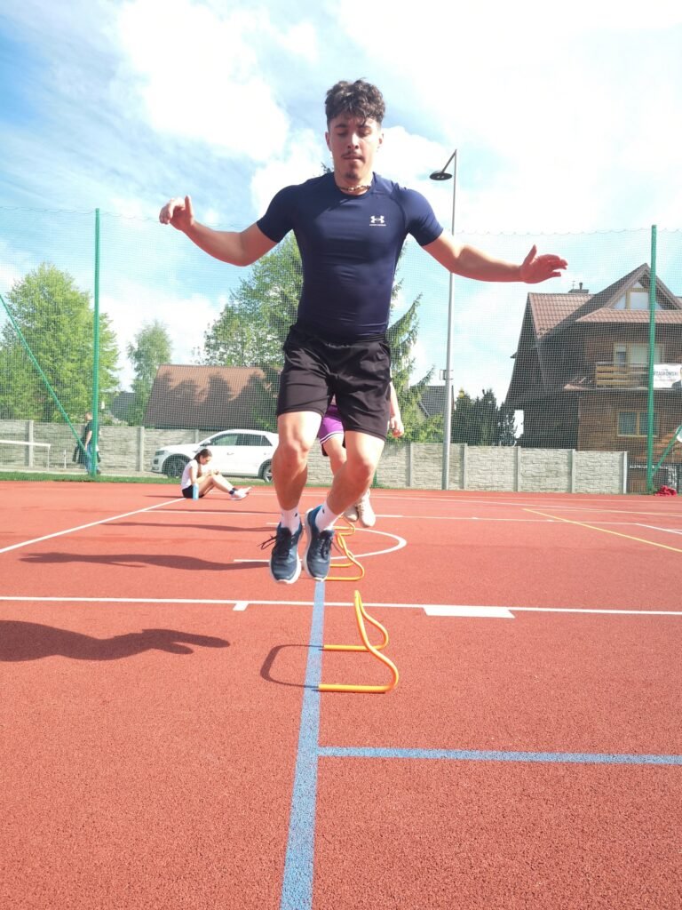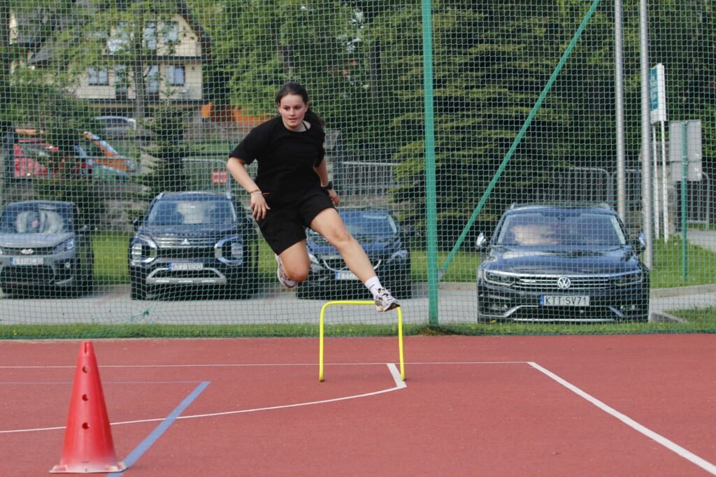Realizowano ćwiczenia siłowe w formie treningu obwodowego oraz elementy siły dynamicznej – z wykorzystaniem skrzyń, płotków i torów sprawnościowych.