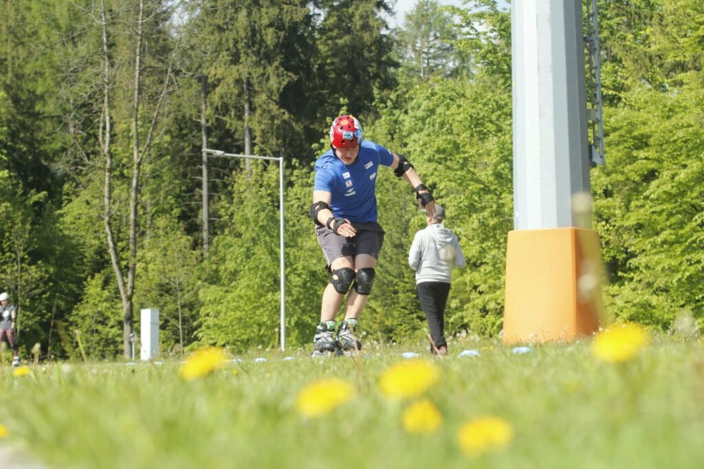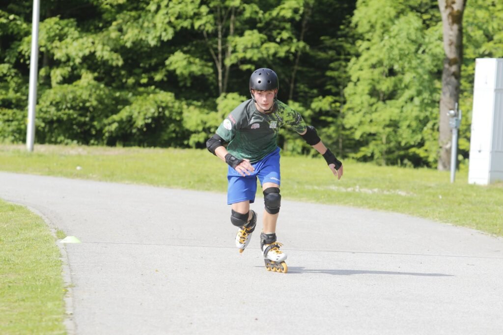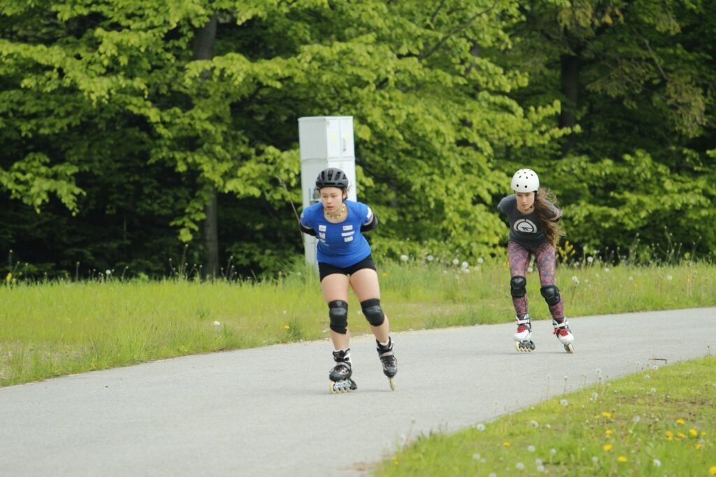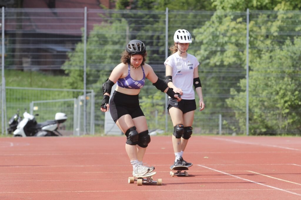 Zawodnicy rozwijali umiejętności balansowania i techniki jazdy podczas treningów na rolkach oraz deskorolkach.